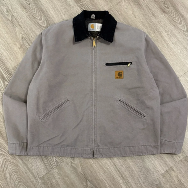 Vintage Y2K Carhartt J97 PTL Men’s Blanket-Lined Grey Canvas Detroit Jacket – L
