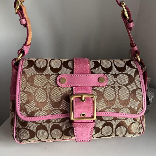 Coach Signature Vachetta Hand Shoulder Bag Pink Tan Silver RN
