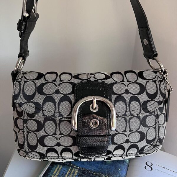 Coach Signature Buckle Shoulder Bag Black Grey Silver hO