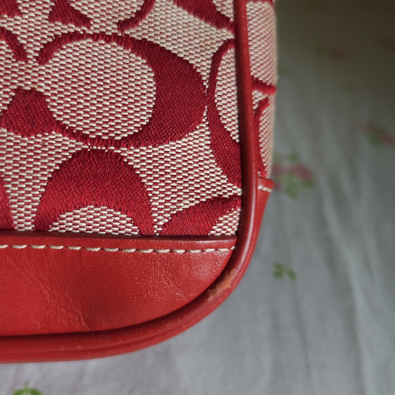 The Vintage Y2K Demi Red Signature CS Mini Shoulder Bag Purse showcases Coach’s iconic signature print, a vibrant red hue, and a compact, stylish design perfect for retro-inspired looks.