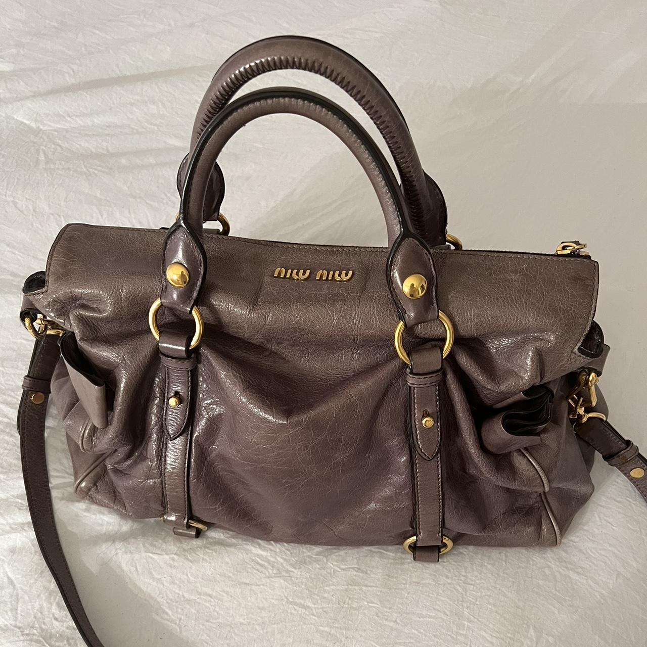 Authentic Grey Looks A Bit Purple In Person Miu Miu Vitello Leather Bow Bag With Gold Hardware And Removable Strap🤎🌆