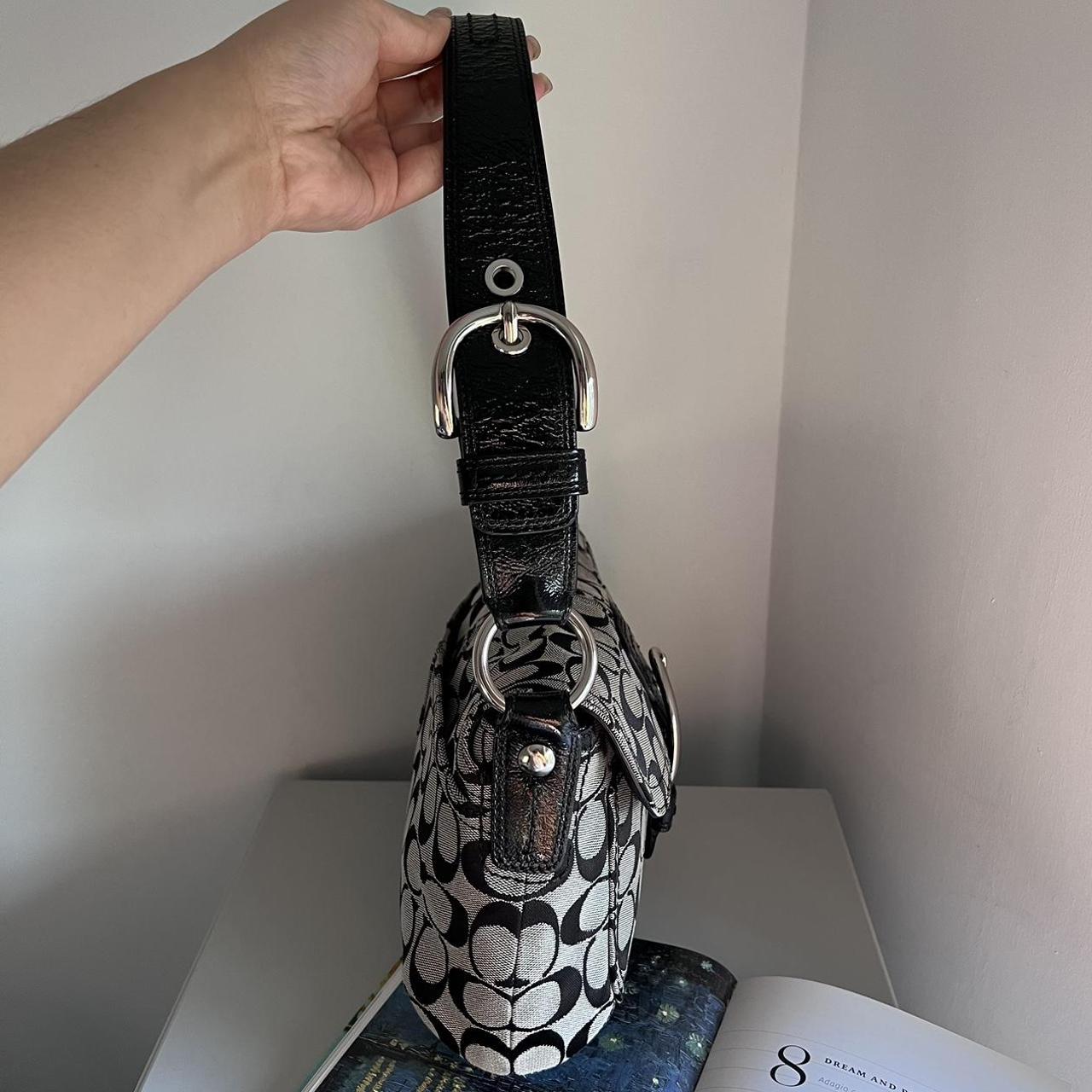 Coach Signature Buckle Shoulder Bag Black Grey Silver hO