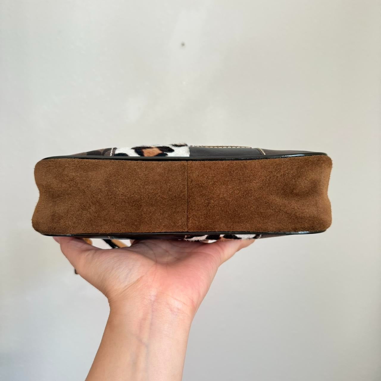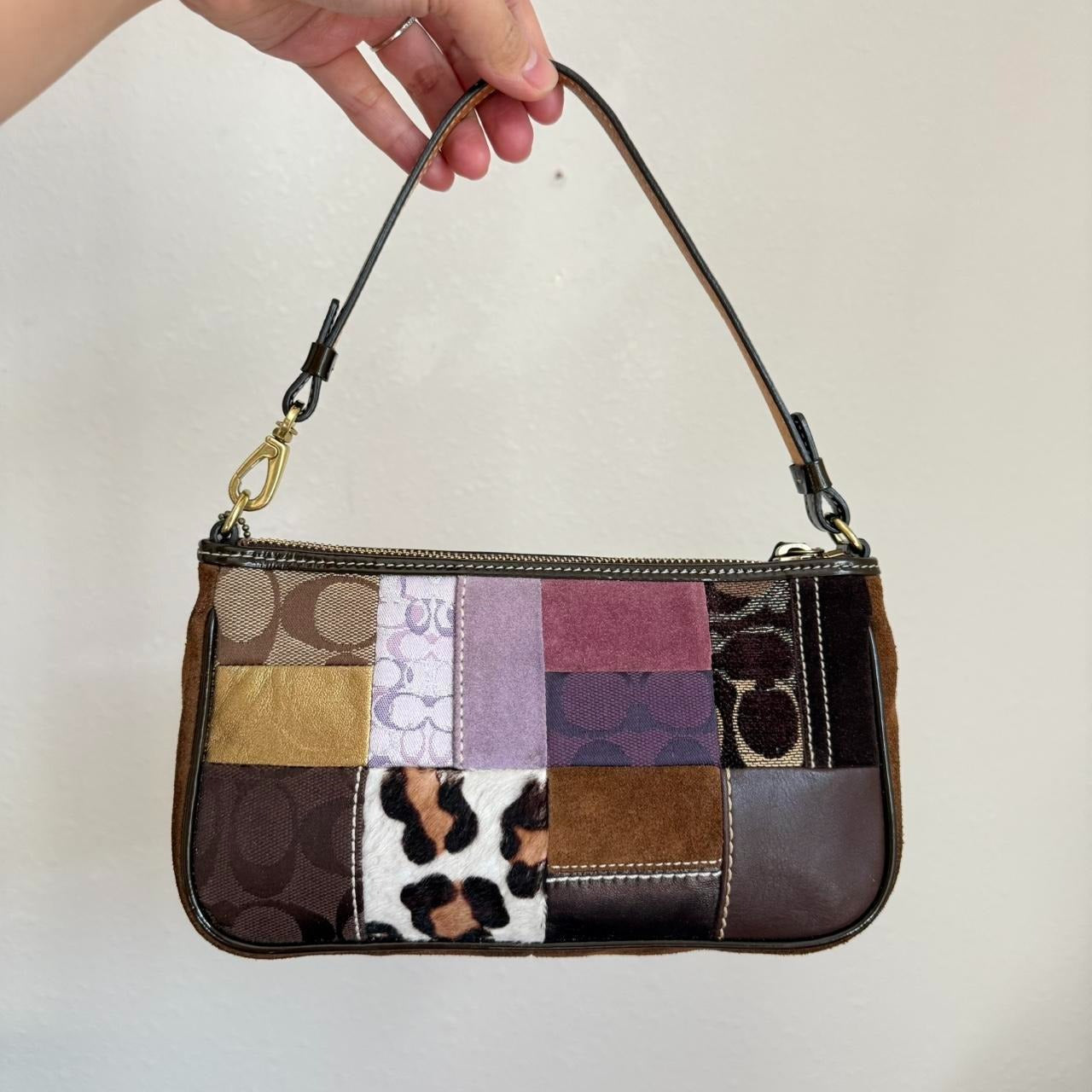 This Y2K-era Vintage Coach Patchwork Demi pouch is a stylish and versatile piece, perfect for adding a playful yet elegant touch to your wardrobe.
